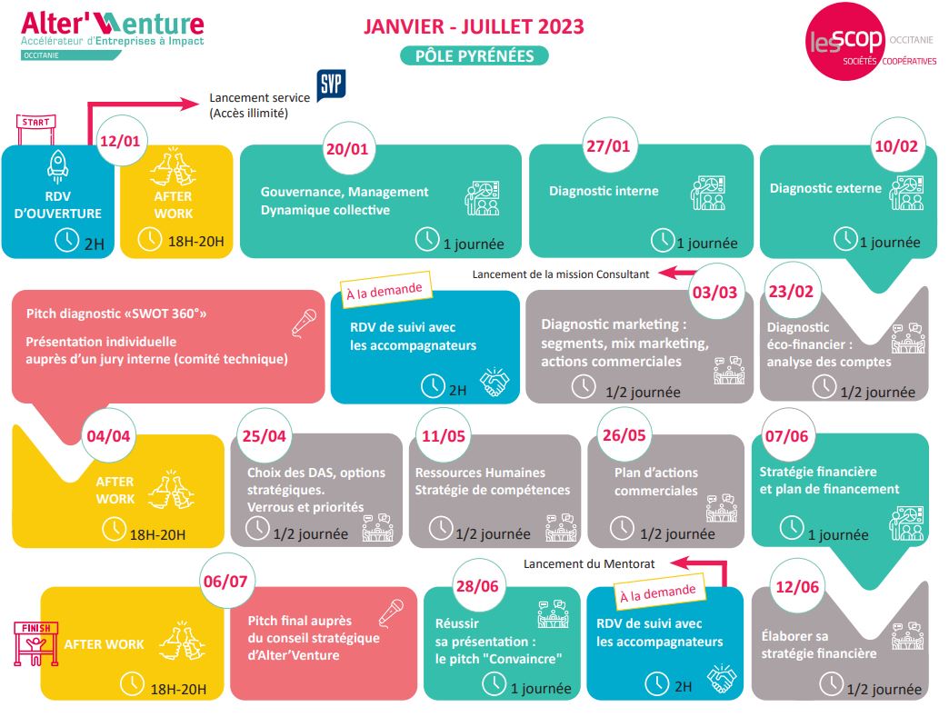 Cet accĂ©lĂ©rateur de croissance des entreprises de lâESS vise Ă accompagner les entreprises Ă leur rythme. Pour cela, AlterâVenture propose un programme dâaccĂ©lĂ©ration qui sâadresse aux entreprises qui souhaitent se dĂ©velopper en cohĂ©rence avec les valeurs de lâESS : une croissance maĂźtrisĂ©e et en accord avec les enjeux dâemploi durable, de coopĂ©ration et de responsabilitĂ© sociale et environnementale. Lâhumain, les emplois et la richesse Ă©conomique créée sur le territoire sont au cĆur de la dĂ©marche dâAlterâVenture.